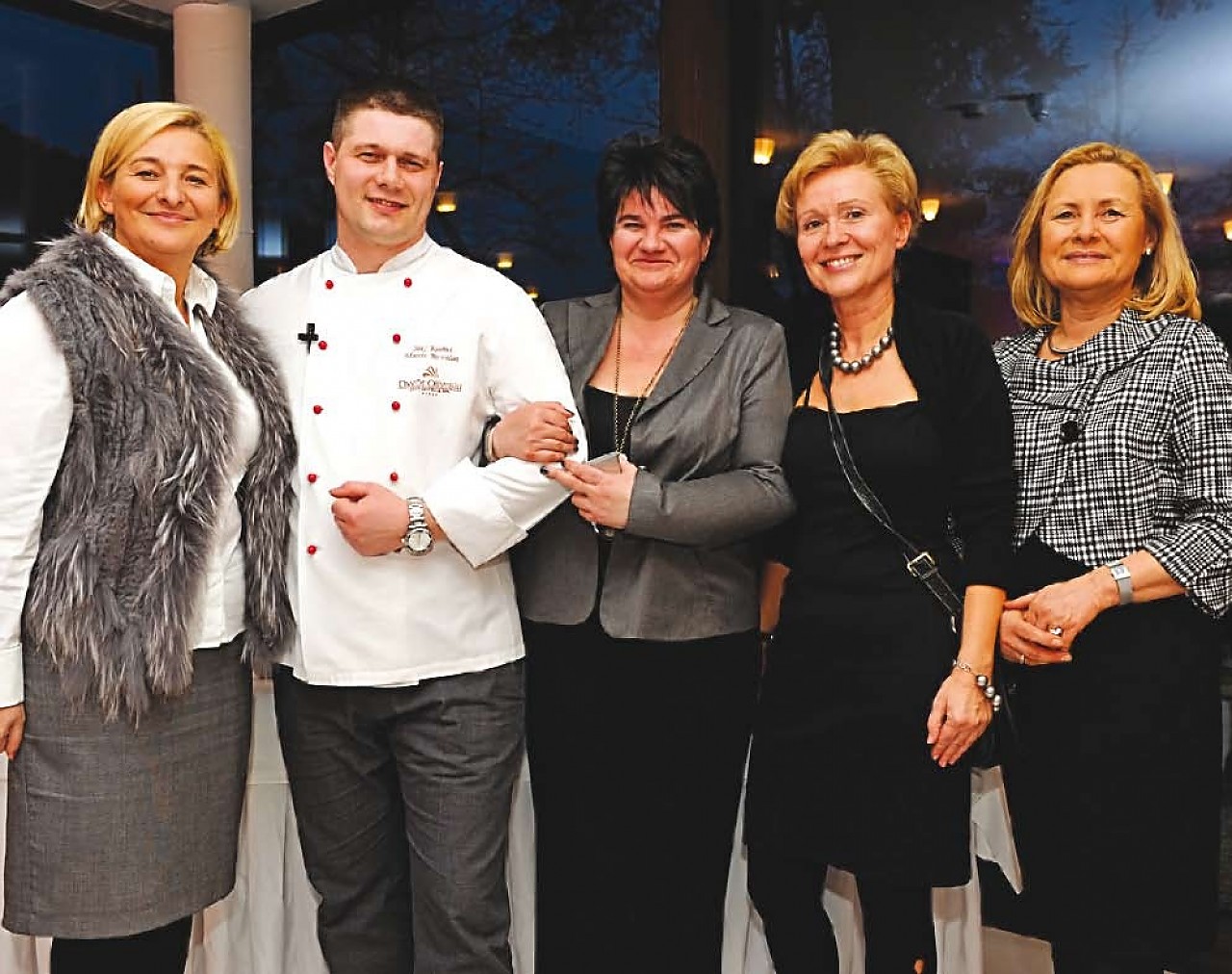 Od lewej: Hanna Kąkol, dyrektor ?Perfect Consulting?, Marcin Kowalski, szef kuchni hotelu ?Dwór Oliwski?, Izabela Wilczyńska, dyrektor hotelu ?Dwór Oliwski?, Hanna Reguła i Barbara Wiktorowicz z firmy ?Bruss Lab ratoria?